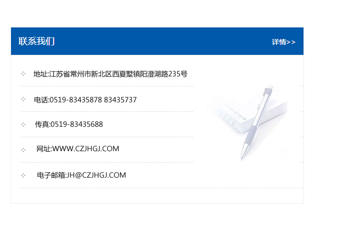 地址:常州市新北區(qū)友邦商務大廈1幢16、17層  電話:0519-85101652  傳真:0519-85112595  郵編:213022  網址:www.cz-jiayue_cn.cchhcm.com  郵箱:xiajifengaa@163.com